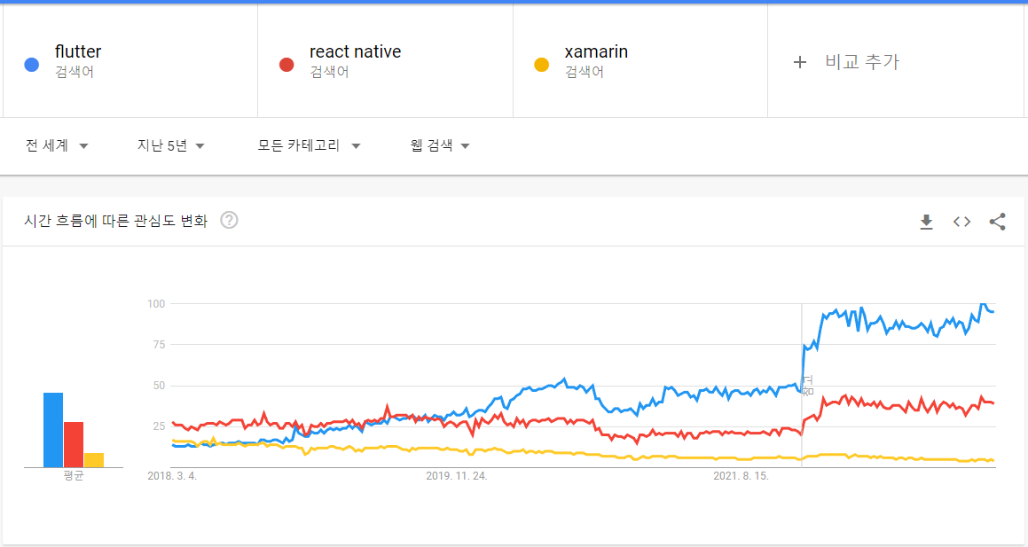 flutter vs react native vs xamarin 최근 1년 구글 웹검색 트렌트